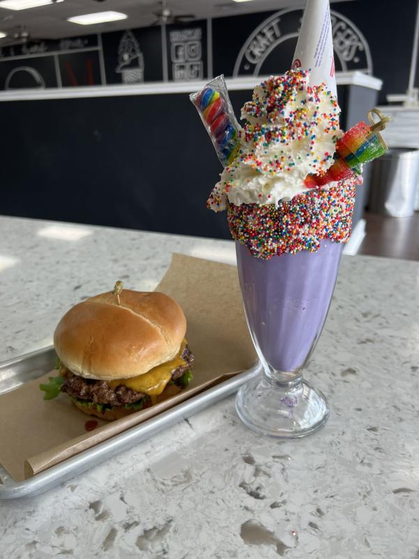 Whether you’re craving one of our signature craft burgers, a hand-spun milkshake, or a delicious dessert, we’ve got you covered. Join us for a relaxed dine-in experience or grab your favorites to go with our easy takeout option!
